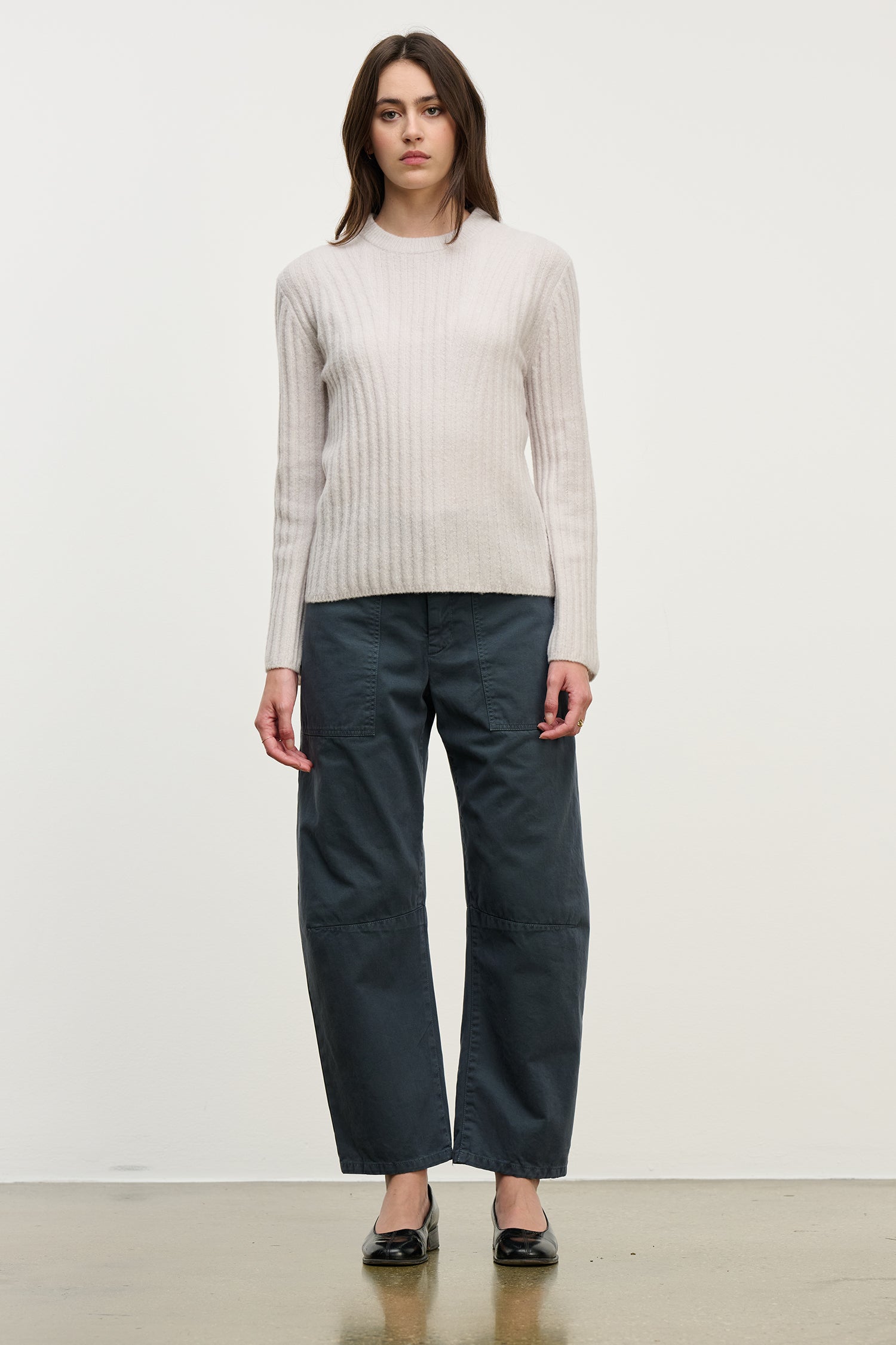 Crafted from a sturdy cotton twill, this casual trouser has a modern line with a subtle, vertical seam at the knee that lends a cool curved silhouette. Utilitarian-inspired patch pockets on the front and rear.