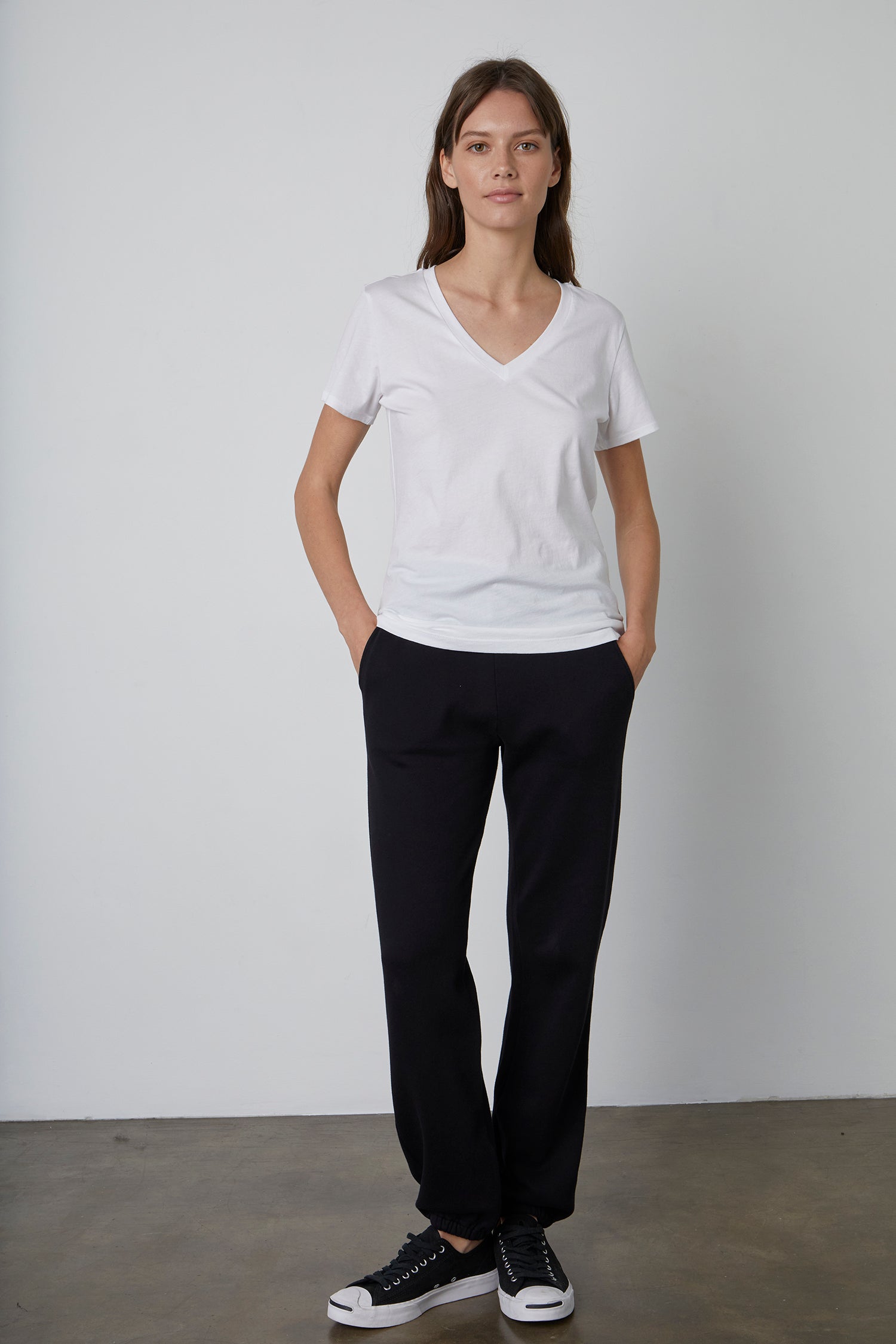 We like to switch back and forth between a crew and V neck tee so it's key to have both. Crafted from our soft, signature cotton knit, with a relaxed sleeve and an easy, straight fit.