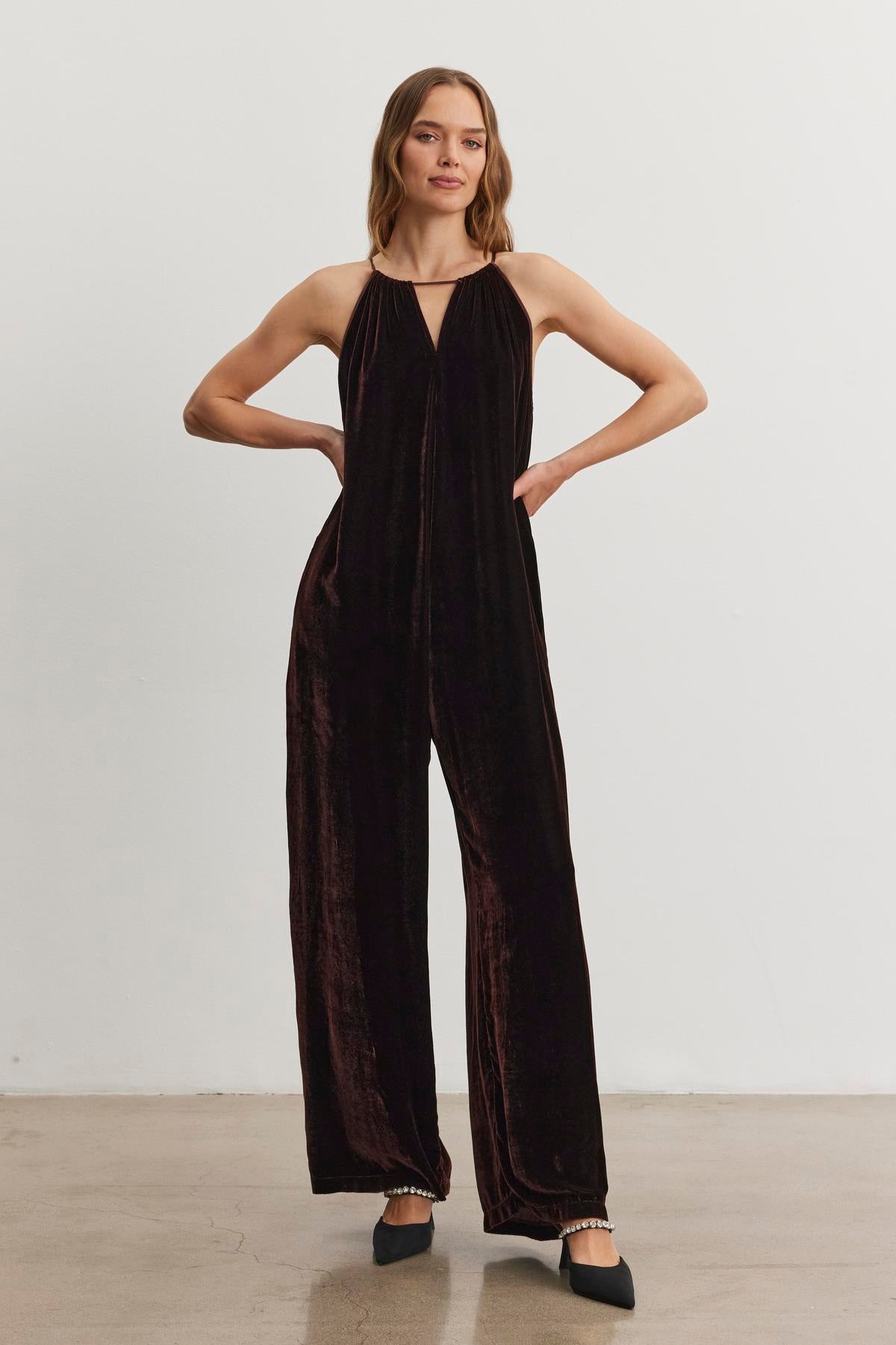 CIENNA SILK VELVET JUMPSUIT IN BURLWOOD