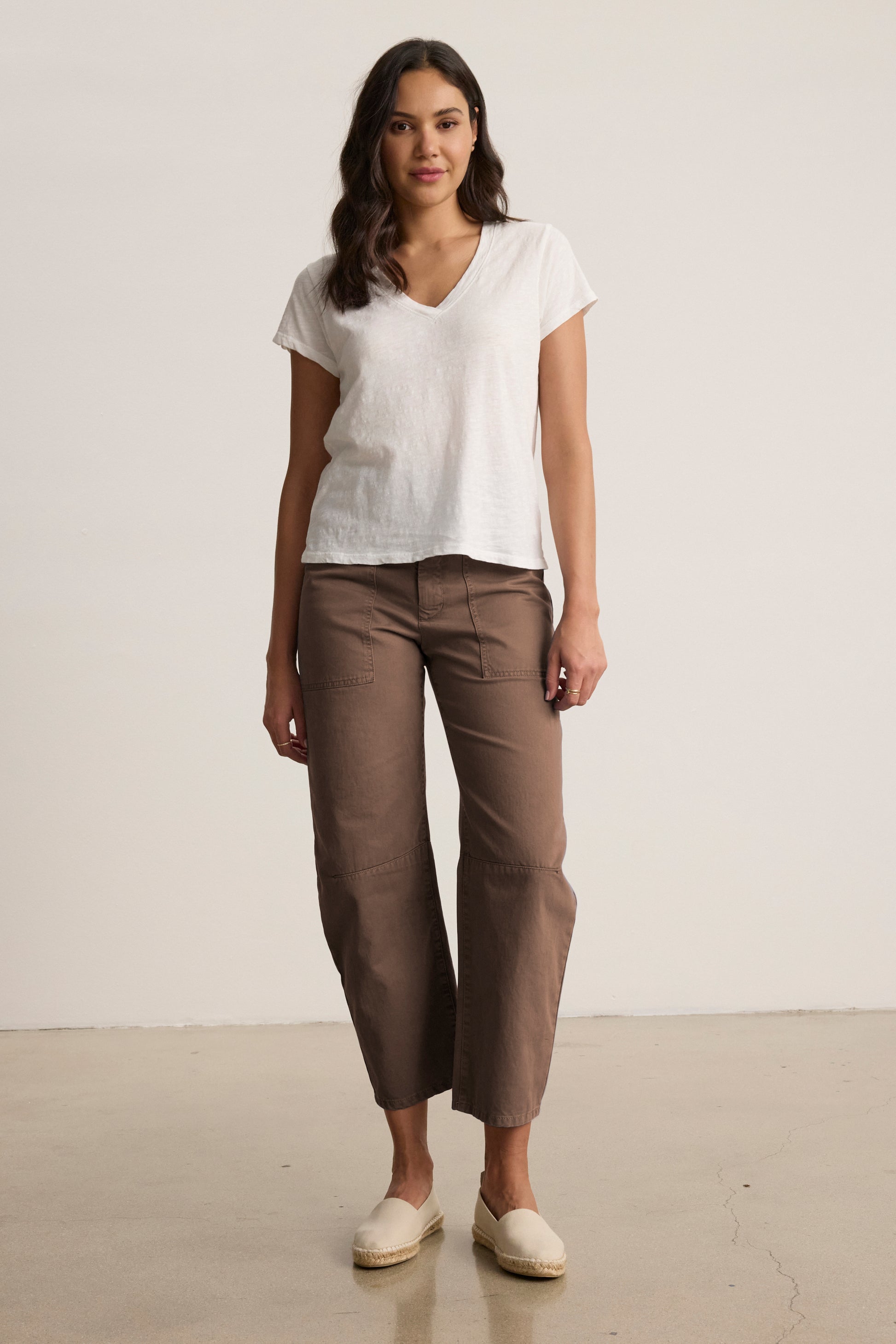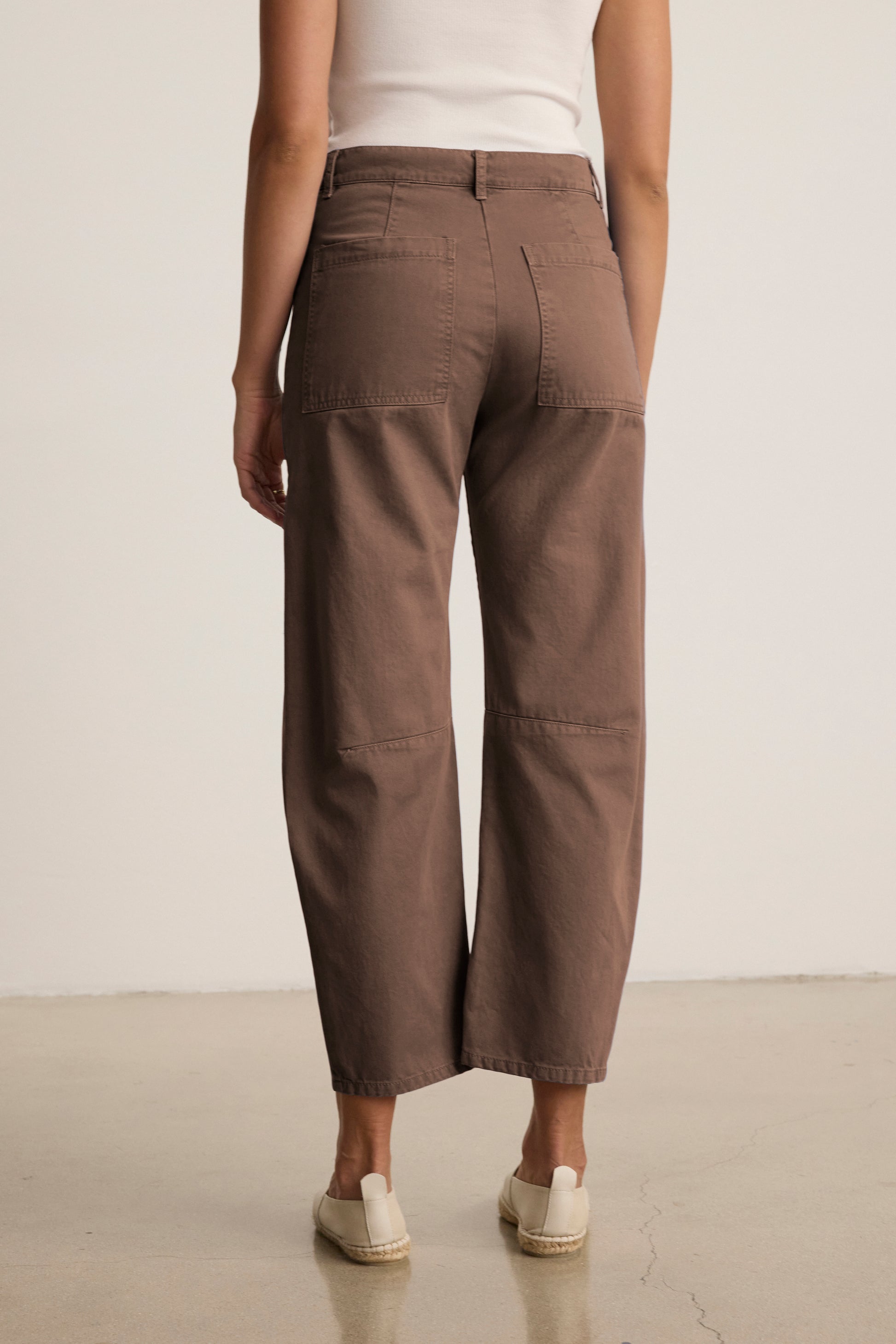 Crafted from a sturdy cotton twill, this casual trouser has a modern line with a subtle, vertical seam at the knee that lends a cool curved silhouette. Utilitarian-inspired patch pockets on the front and rear.
