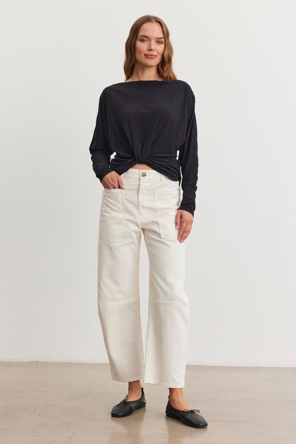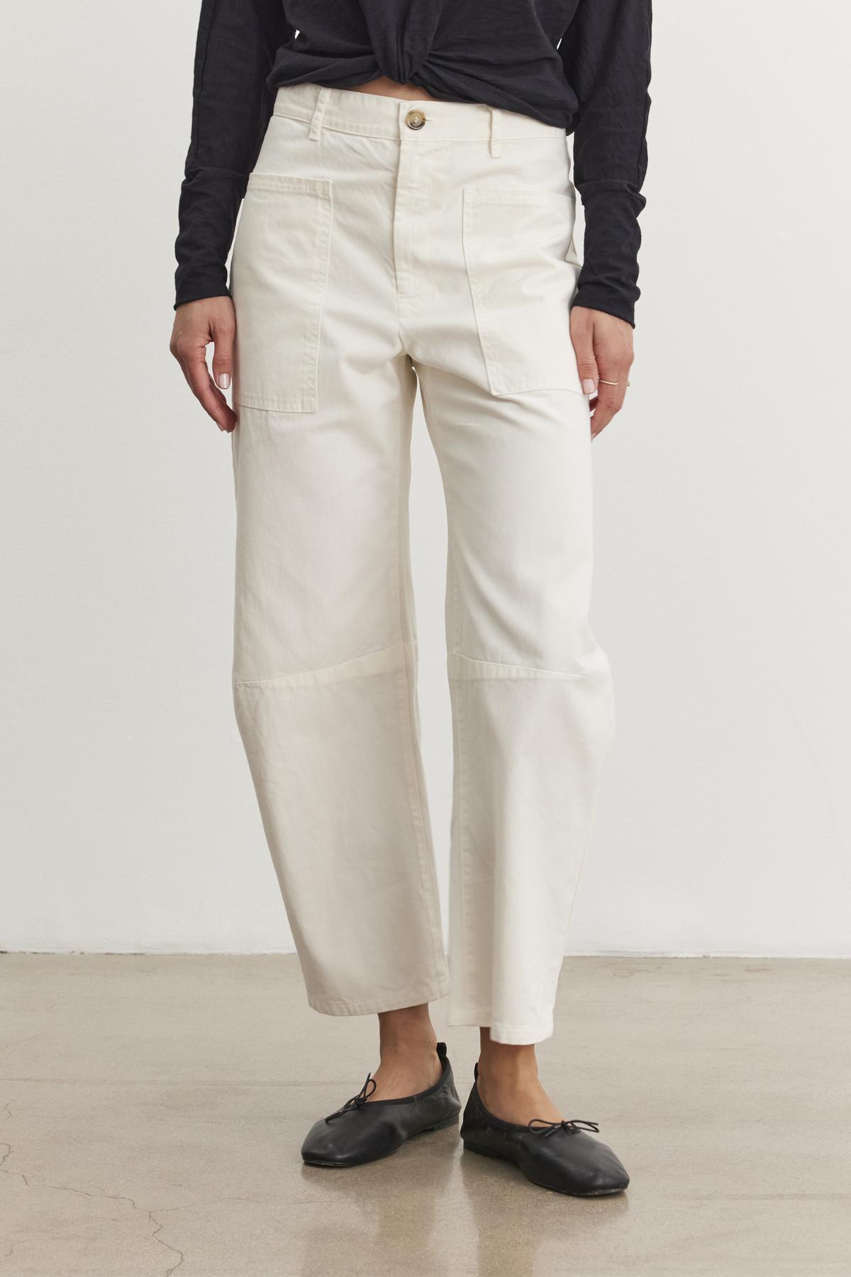 Crafted from a sturdy cotton twill, this casual trouser has a modern line with a subtle, vertical seam at the knee that lends a cool curved silhouette. Utilitarian-inspired patch pockets on the front and rear..