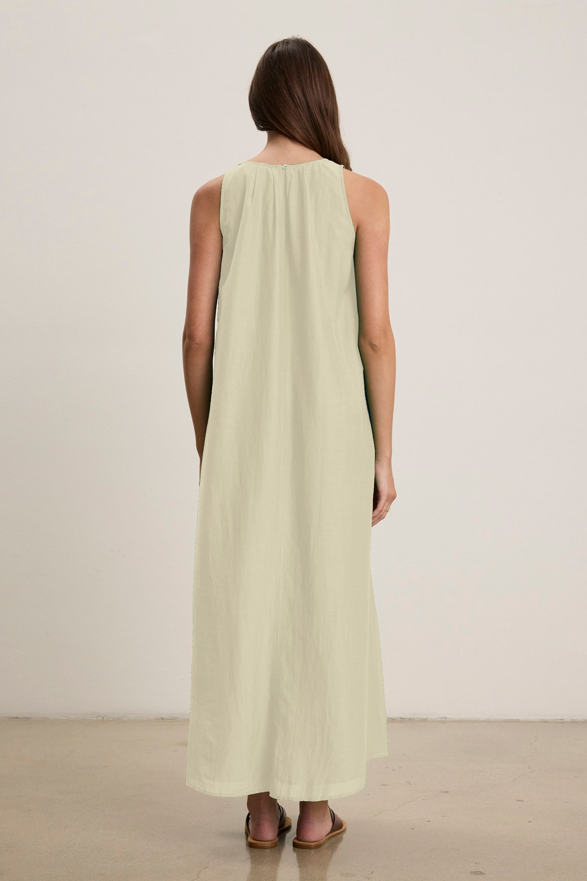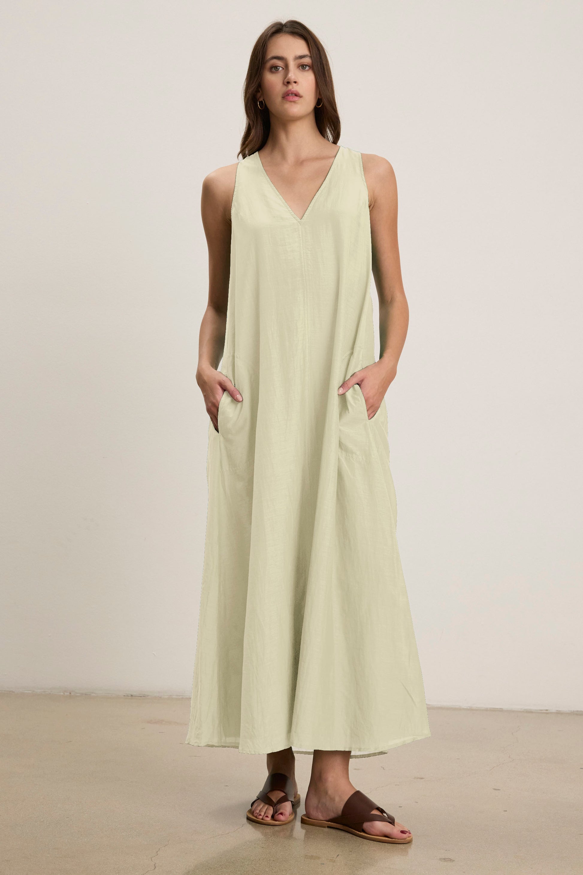 Crafted from airy silk cotton voile, this maxi dress features a flattering V-neckline, tank silhouette, and side seam patch pockets for added ease. A detachable belt allows you to adjust the shape to suit your style, making it a versatile staple for warm-weather dressing.