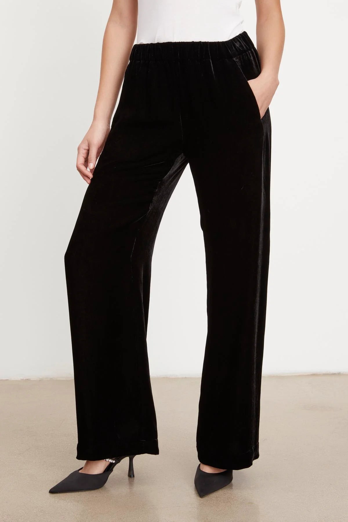 A timeless understated pant that will be on heavy rotation for years to come. Crafted from a luxe silk velvet that lends a subtle shimmer, these bottoms feature an elastic waistband that gently flares out to a wider leg.