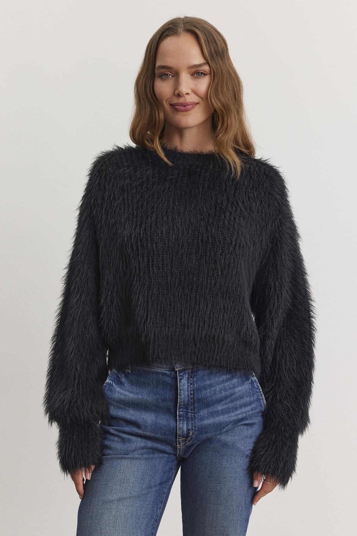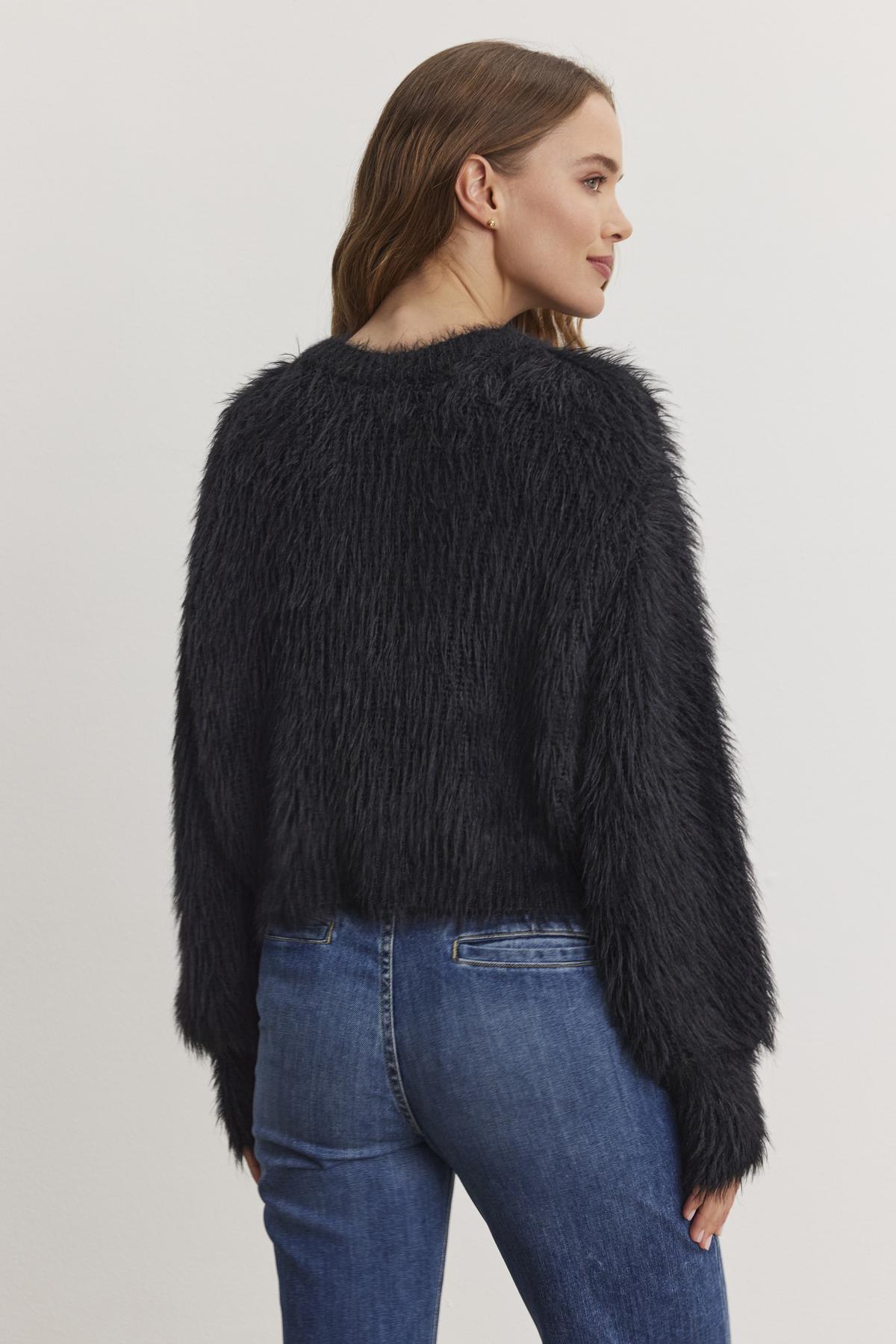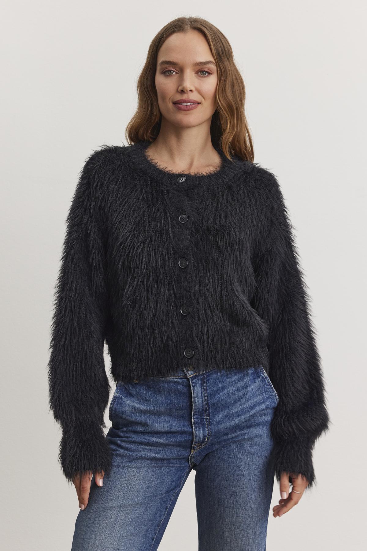 HOLLAND FEATHER YARN CARDIGAN IN BLACK