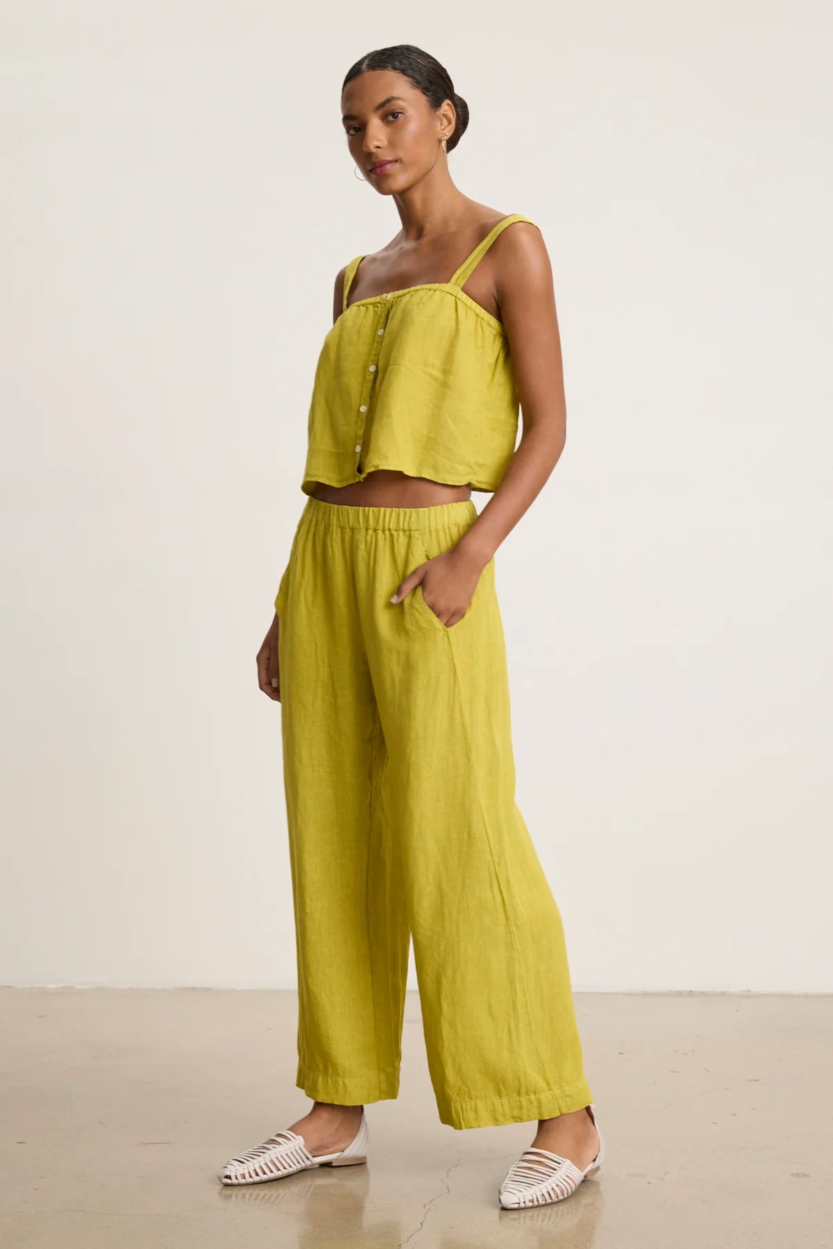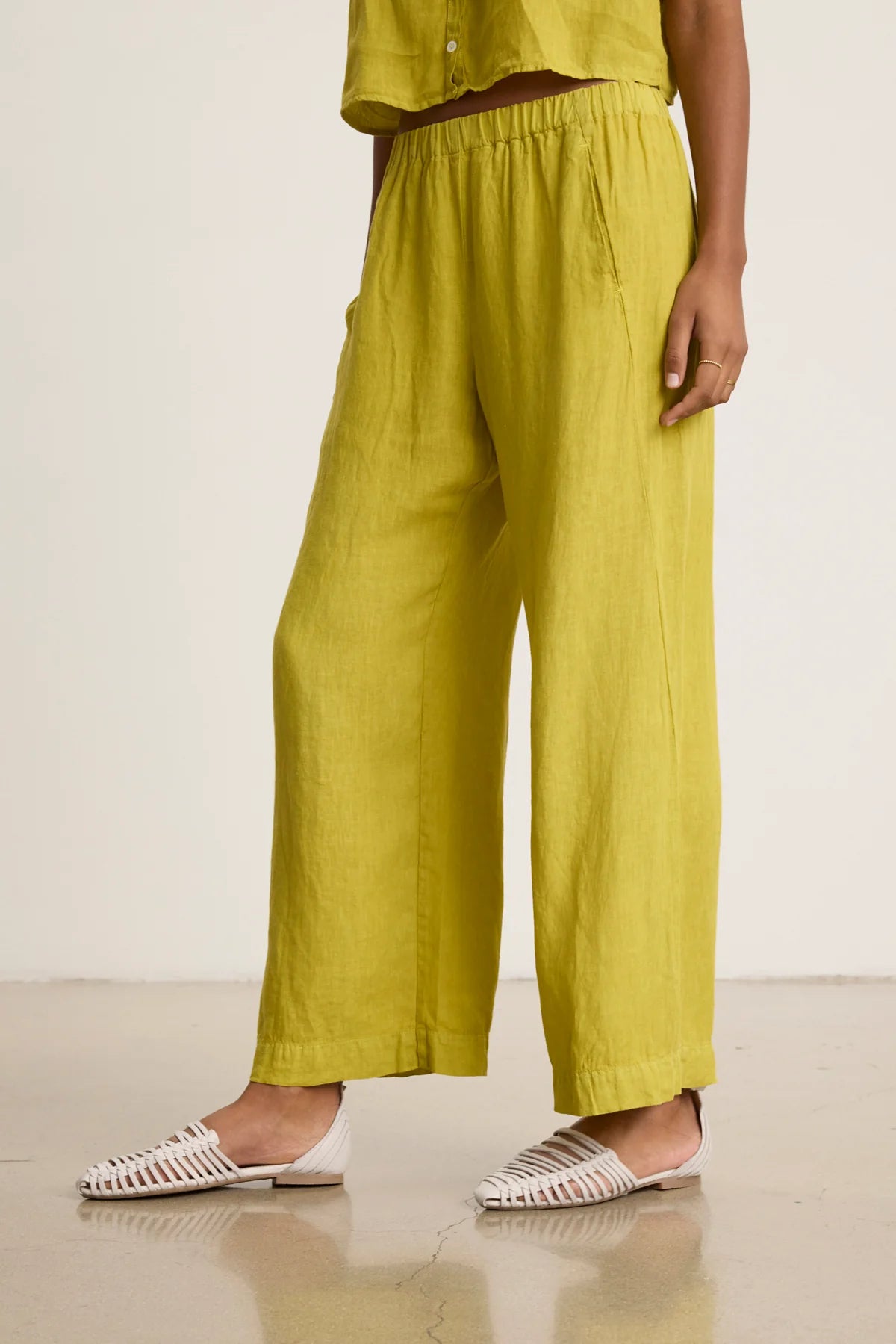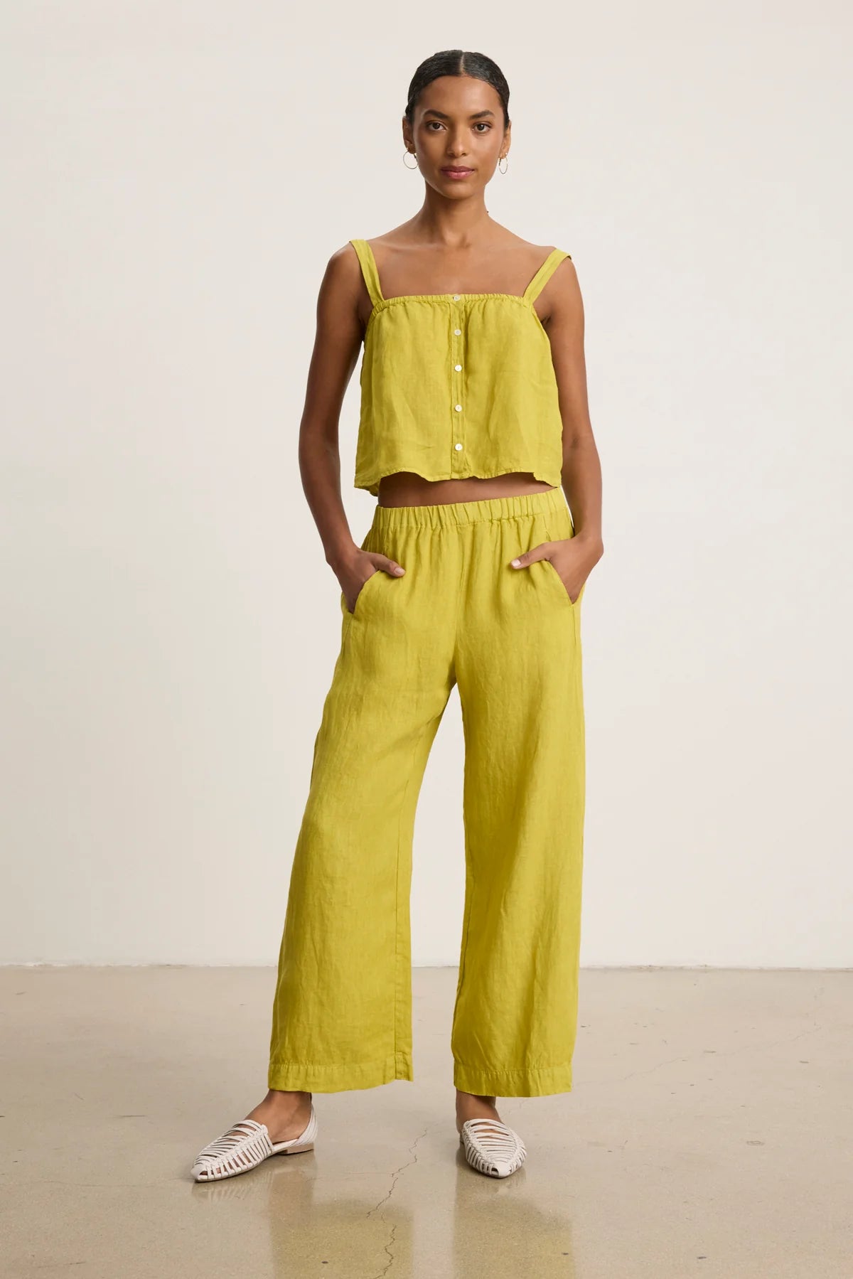 When it comes to summer fabrics, linen is winnin'. Lightweight, breezy and stylishly disheveled it's perfect for dressing up or down. These straight leg pants are slightly cropped above the ankle for max chic factor and finished with super practical slash pockets at the waist.