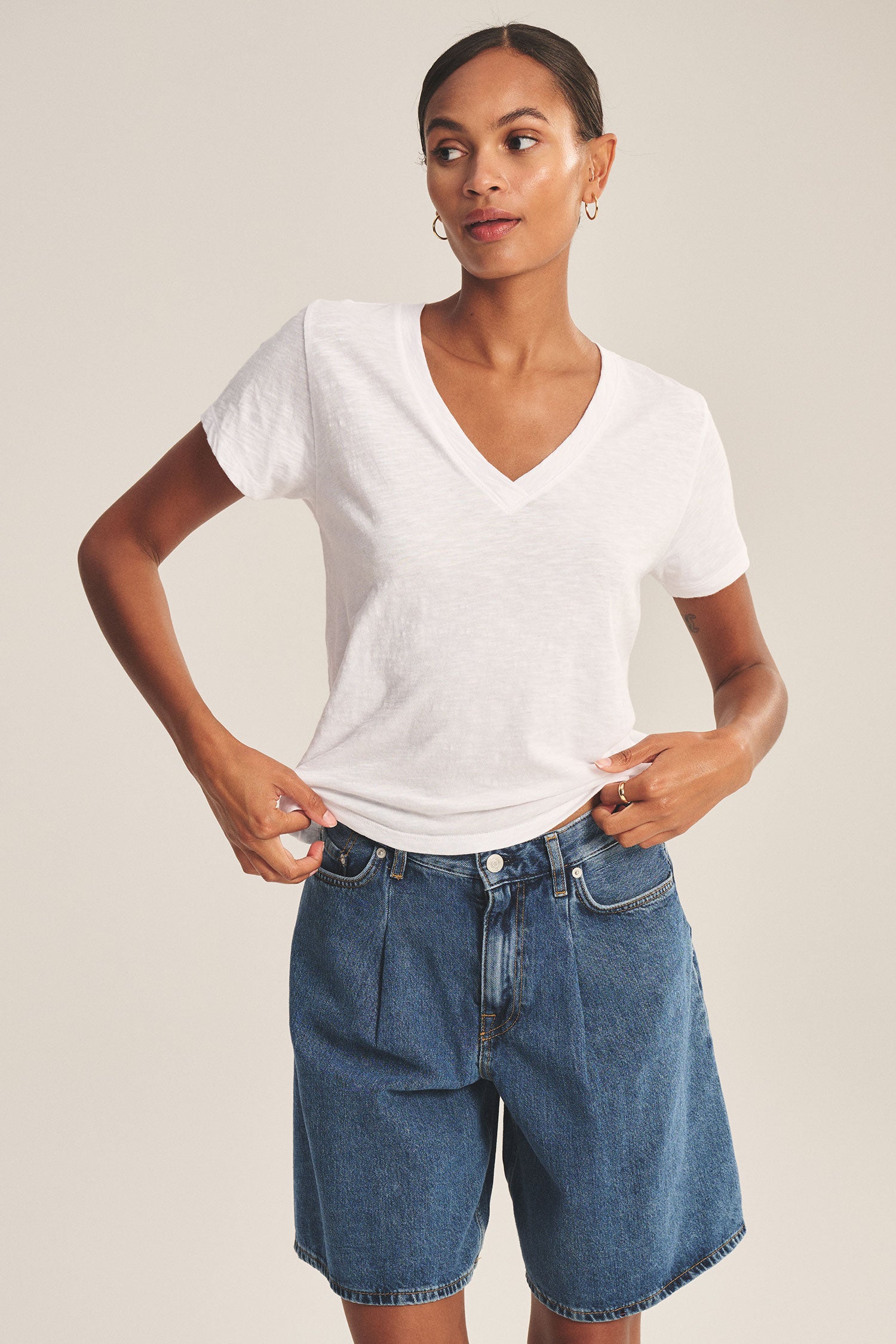 A timeless wardrobe staple, this tee updates a classic silhouette with a flattering V-neckline and subtle texture. Crafted from our signature cotton slub, it offers all-day comfort with a lived-in feel.