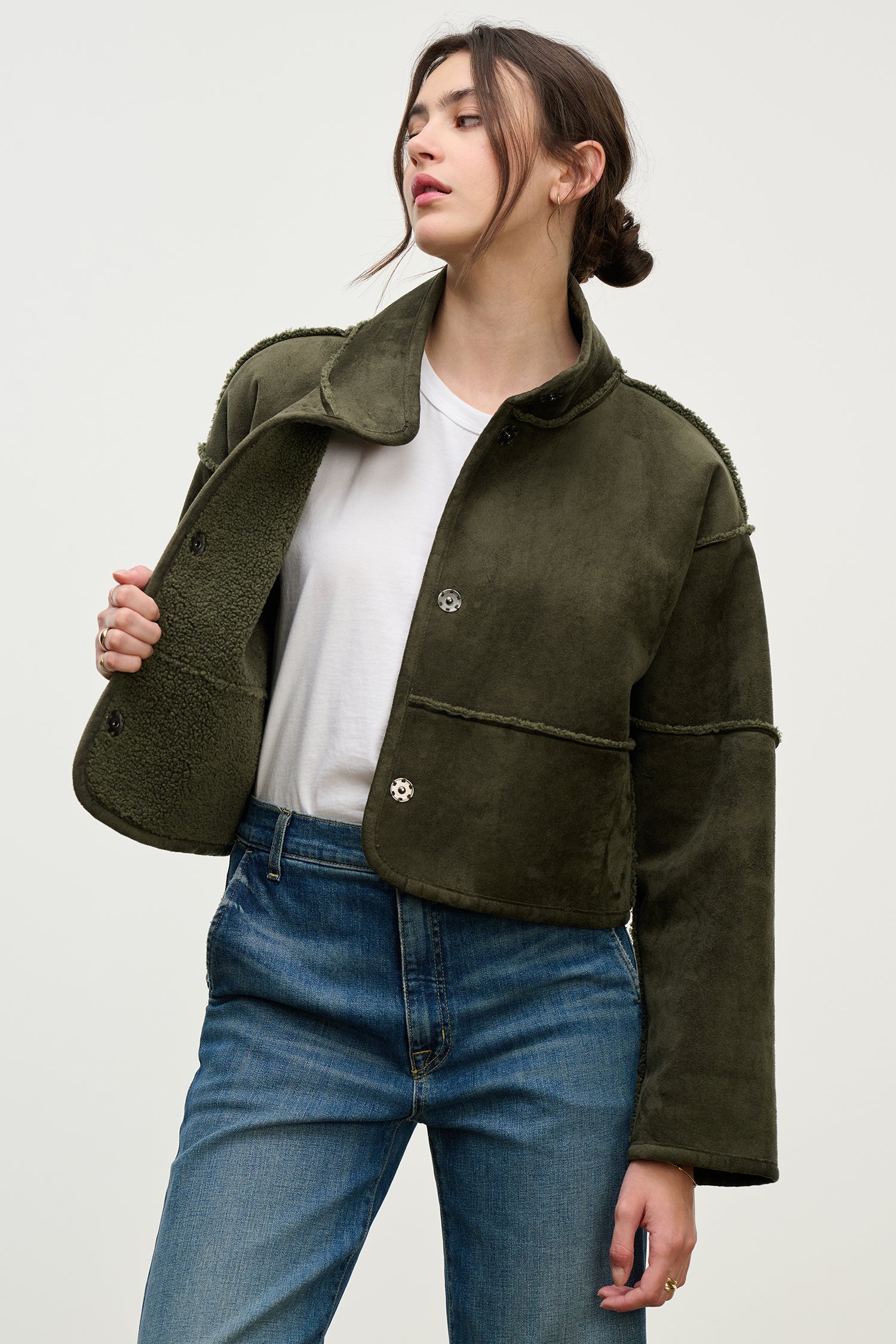 KELLY SHERPA REVERSIBLE JACKET IN ARMY