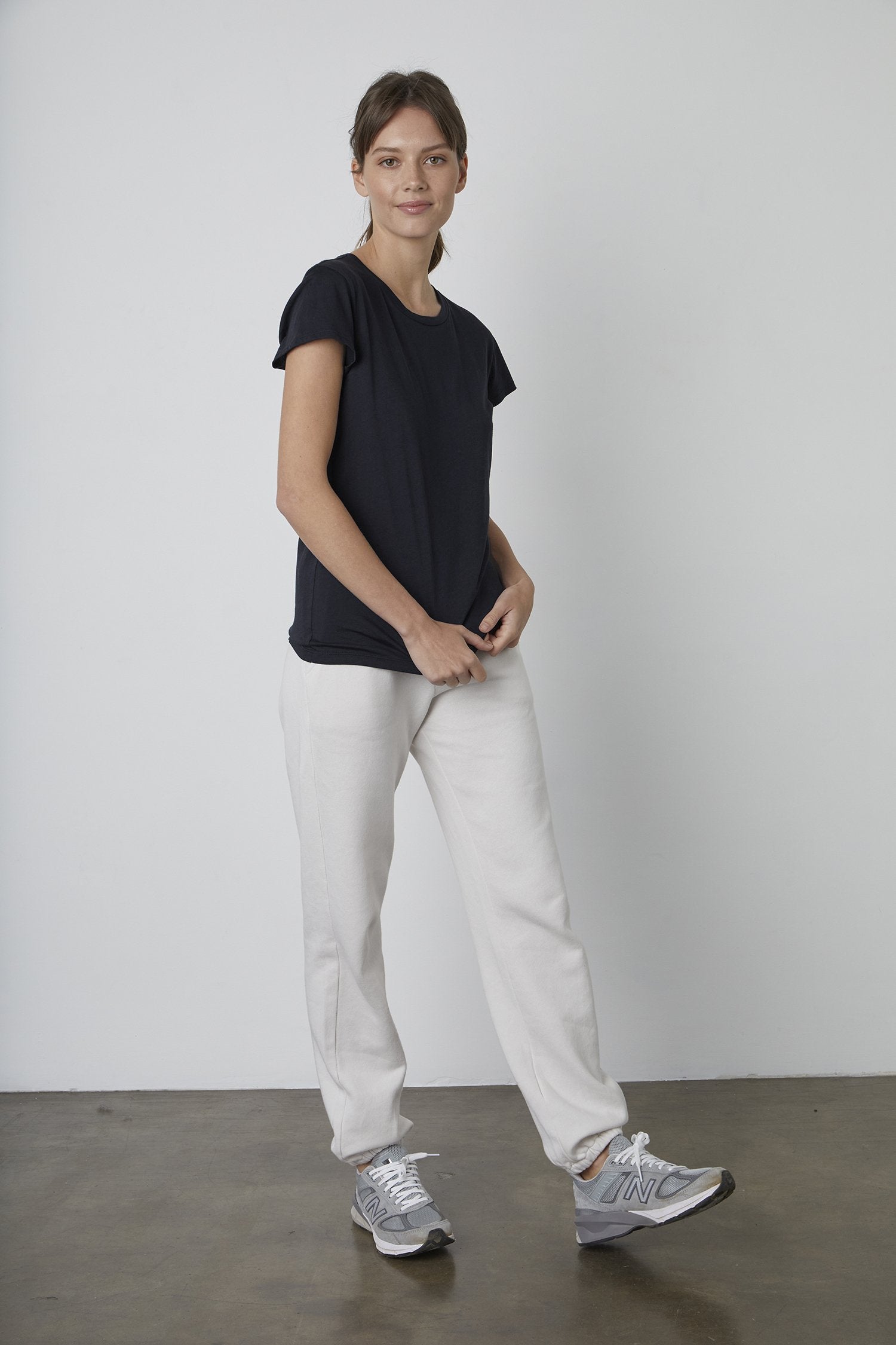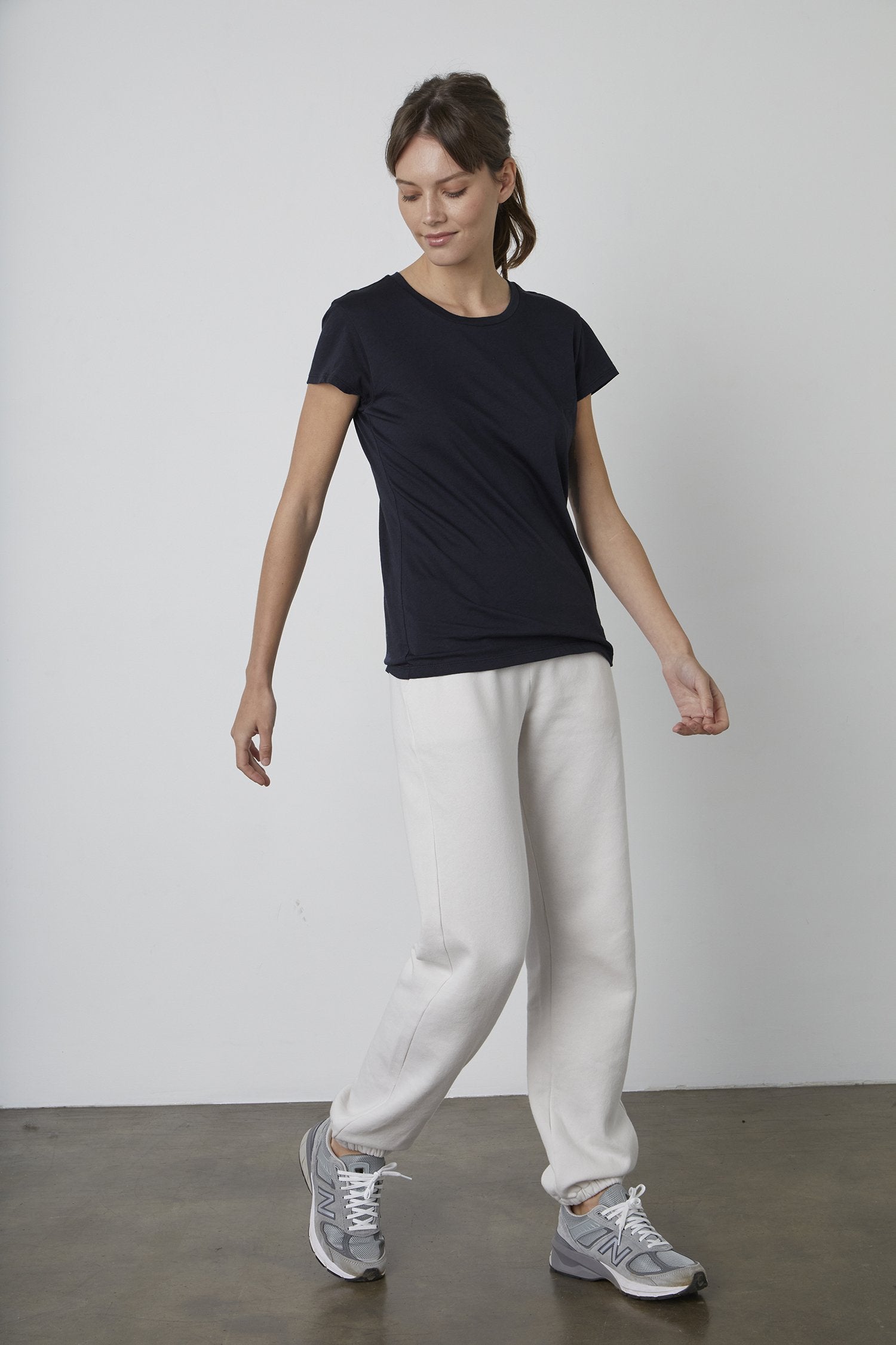 The perfect tee with a classic crew neckline with freshly-dated shrunken sleeve. Our soft, signature whisper cotton keeps it lightweight and endlessly versatile.