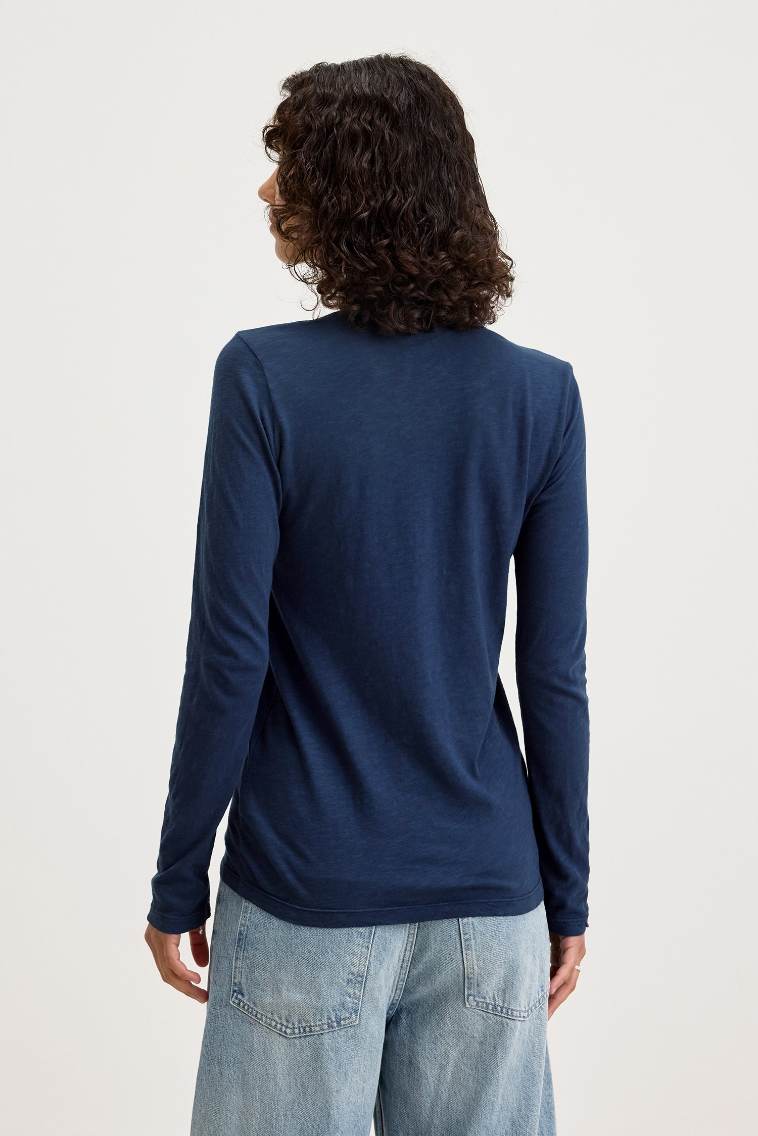 Made from a textured cotton slub, this tee features a flattering v-neckline and long sleeves. Perfect for everyday wear, you'll find yourself reaching for it time and time again.