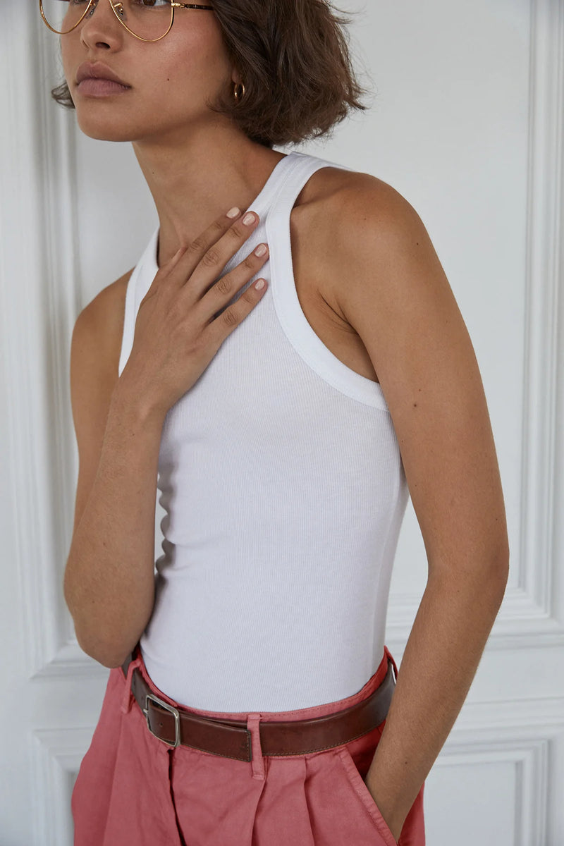 The weight of this rib is a little heavier and it has just the right amount of stretch so it fits like a dream on the body. Chic and simple.